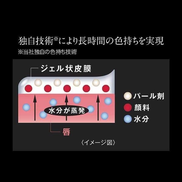 落ちにくさも美発色もよくばりたい、落ちにくい口紅。唇から蒸発する水分を活用して密着ジェル膜に変化する独自技術※で、つけたての色が長時間持続。高発色&保湿。※当社独自の色持ち技術