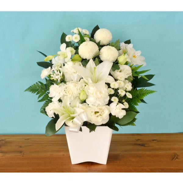 お供え お悔やみ 花 フラワーアレンジ 洋花を使った ユリのお供えアレンジMサイズ 法事 四十九日 一周忌 命日 贈り物 生花アレンジメント 生花 即日発送
