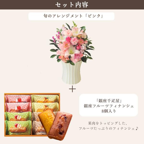 花とスイーツのセット 旬のアレンジメント Lサイズ「ピンク」+【銀座千疋屋】フルーツフィナンシェセット FKAASW