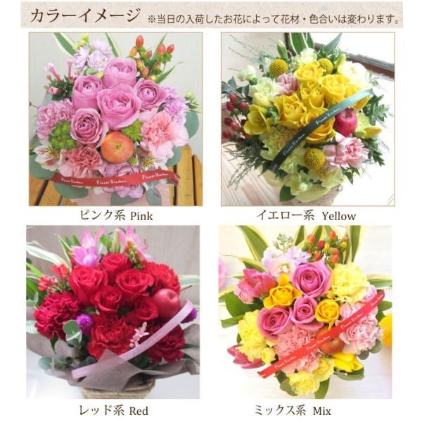 アレンジメントはピンク系、イエロー系、レッド系、ミックス 4色からお選びいただけます。