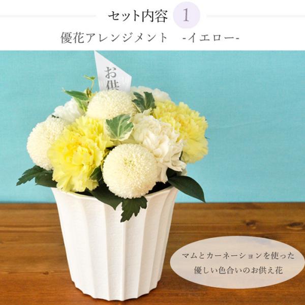 お供え花とスイーツのセット お供え優花アレンジメント+フィナンシェ&「WEDGWOOD」ティーバッグセット 即日発送 あすつく お悔み FKAA