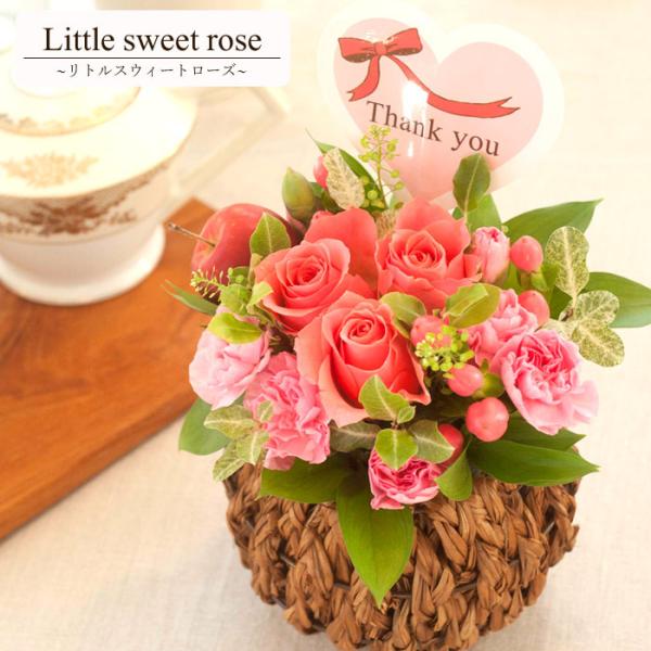 花とスイーツのセット リトルスウィートローズと 長崎カステラ蜂蜜 0.5号 10切入 セット 誕生日 記念日 お祝い花 即日発送 FKAA