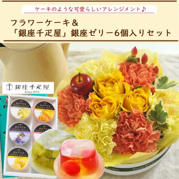 花とスイーツのセット フラワーケーキと【銀座千疋屋】ゼリー6個入りセット 誕生日 記念日 お祝い花 即日発送 あすつく FKAA