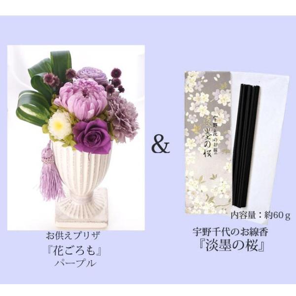お線香とお供えプリザ 花ごろも (パープル)と 淡墨の桜 線香セット