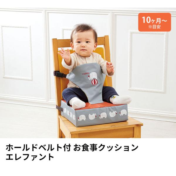 ホールドベルト付 お食事クッション エレファント 96670 高さ調整 2重ベルト ベルト付き ベルト取り外し可 10ヵ月〜 長く使える かわいい 赤ちゃん 幼児