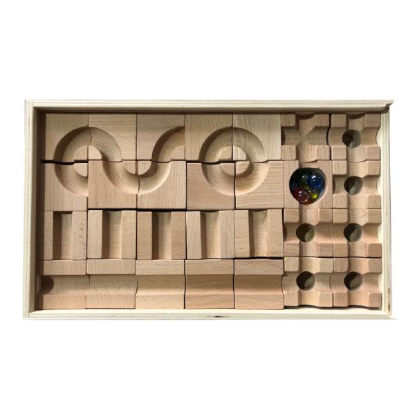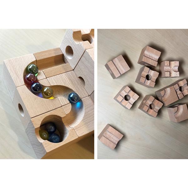 考える・組み立てる・遊ぶ!木のブロックとビー玉で遊び方無限大