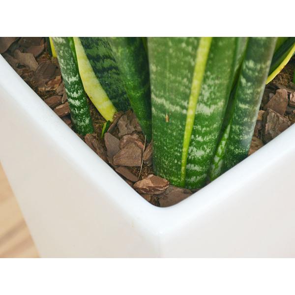 サンスベリア(サンセベリア)・ローレンティはトラの尾とも呼ばれ、マイナスイオンを放出するといわれる多肉植物系の観葉植物です。乾燥に強く育てやすい観葉植物でお祝い事のギフトなどにもよく利用されます。存在感のある大きなサンスベリアをスタイリッシュな陶器鉢に植えました。お部屋のインテリアにもギフトにもおすすめです。