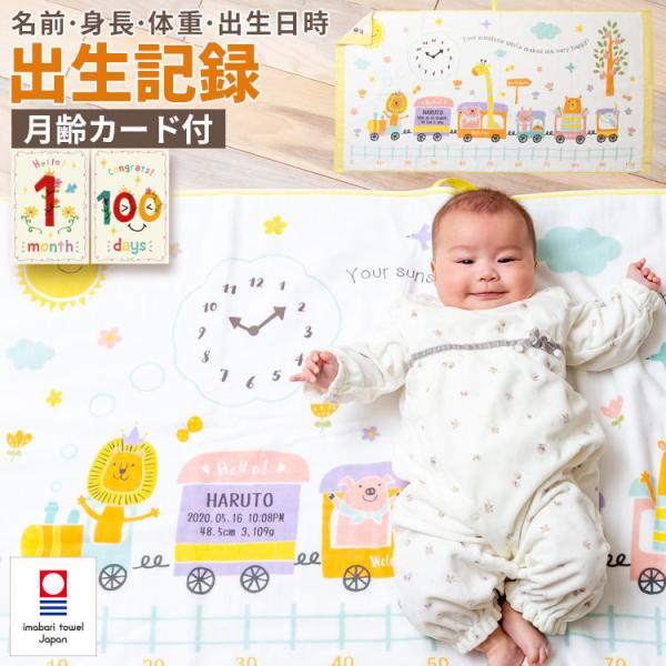 出産祝い 今治タオル 名入れ 身長計付きバスタオル 男の子 女の子 赤ちゃん おしゃれ ベビーギフト お祝い プレゼント ガーゼタオルケット アニマルトレイン