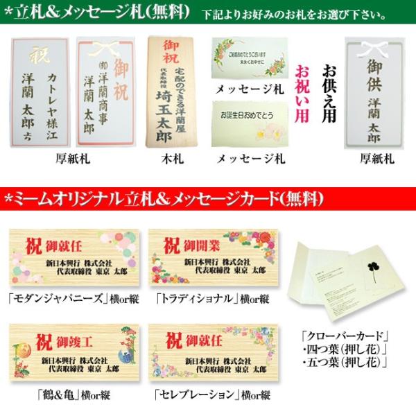 *ご用途: 開店・開業祝い、開院・開局祝い、上棟・竣工祝い、新築祝い、就任・栄転・昇進祝い、優勝祝い、受章・受賞祝い、上場祝い、当選祝い、記念日・周年祝い、結婚祝い、公演・楽屋見舞いなど。