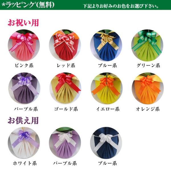 *花色|白:定番のお色で一番人気。お悔やみにも。ピンク:女性に人気。目立たせたい時にも。リップ:紅白で縁起が良いとされます。長寿のお祝いにも人気。