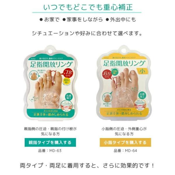 足指開放リング 足の薬指に装着して小指との間を広げます。内反小趾対策と歩行サポートバランス 左右兼用 MD-64