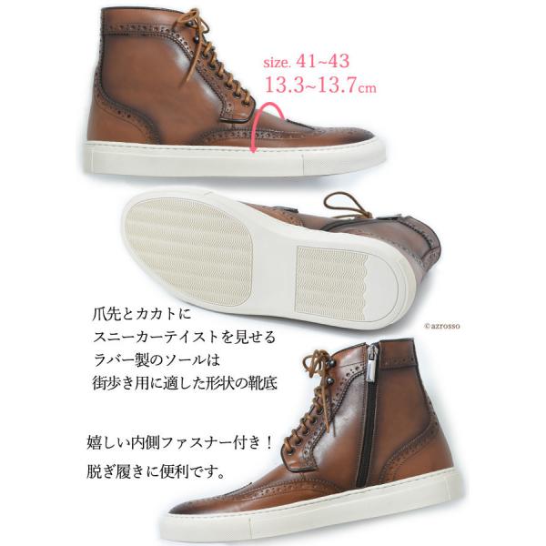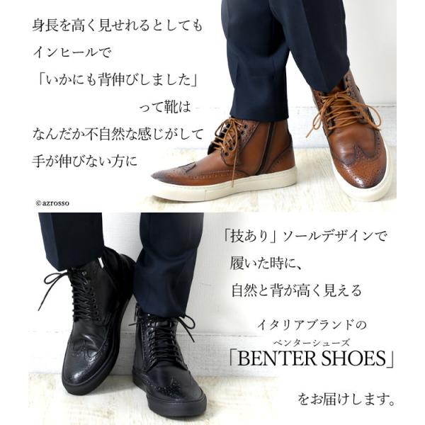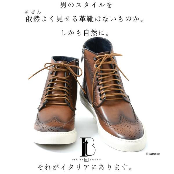 スタイリッシュなハイカット レザーシューズにスニーカーの厚底ソールを組み合わせ「ソールの3cm+インソールの1cm」4cm見た目の不自然がなく背が高くなります。