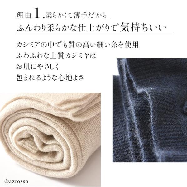 カシミアの中でも質の高い細い糸を使用。ふわふわな上質カシミヤは肌に優しく、着け心地抜群。