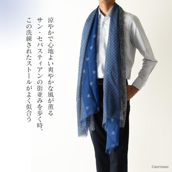 ストール メンズ 定年 退職 誕生日 プレゼント 大判 春 秋 羽織る 軽量 モダール シルク ブルー ネイビー カラーズ デ オトノ