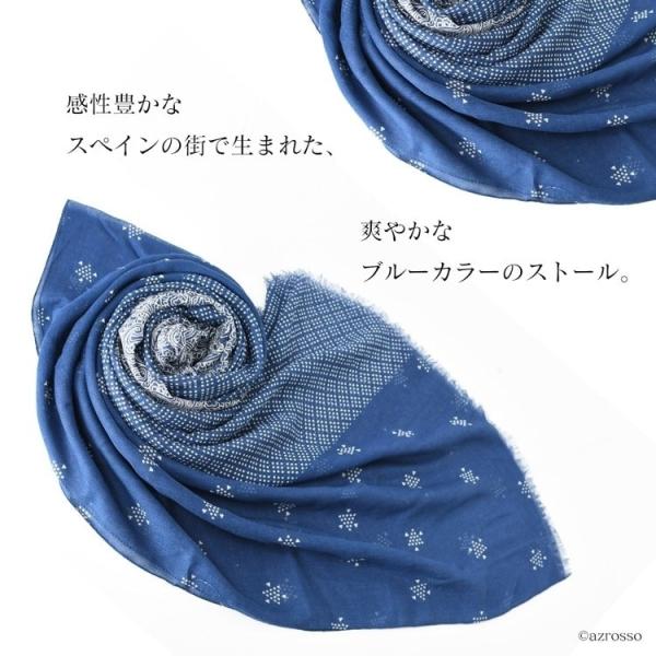 夏にも合う色で、春物、秋物も最適。ドット・ペーズリー柄でブルーとネイビーの2色使い、1枚で2枚分と楽しめます。