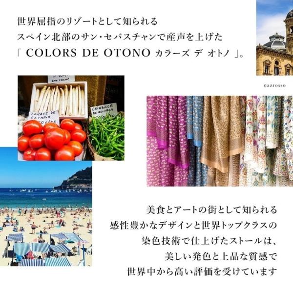 ブランドは、世界屈指のリゾート、スペイン北部のサン・セバスチャンで産声を上げた COLORS DE OTONO カラーズデオトノ。感性豊かなデザインと世界トップクラスの染色技術で仕上げたストールは、手捺染(シルクスクリーン)で美しい発色と上品な質感で世界中から高い評価を受賞。