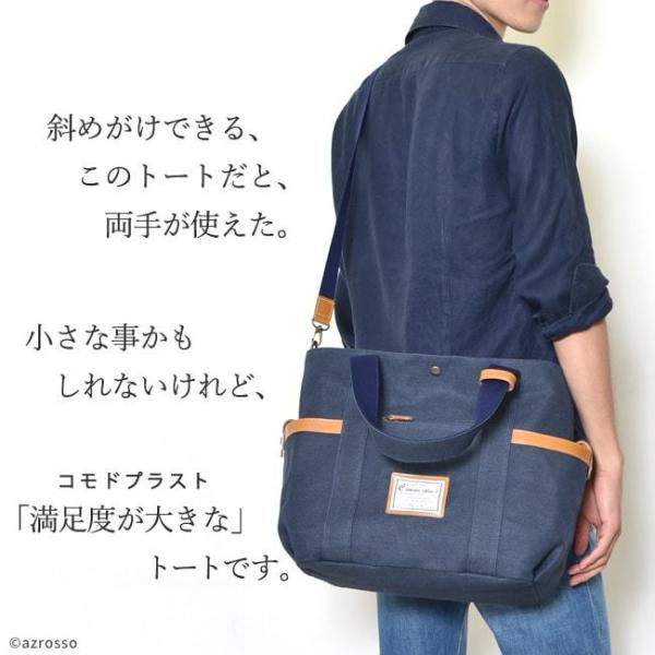トートバッグ キャンバス メンズ 大きめ ファスナー付き 布 2way ショルダー バッグ 無地 厚手 A4 横 白 アイボリー ネイビー ブランド コモドプラスト 日本製