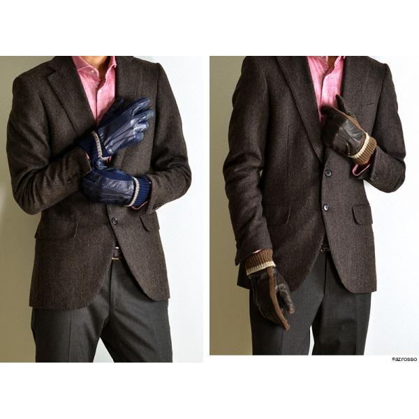 上質なイタリアンレザーを使用。エレガントな艶と質感が男性を惹き付けます。色はブラック(黒)・ブラウン(茶色)・ネイビー(紺)の3色をご用意。ラムレザー(羊革)とウールの贅沢な組み合わせが魅力。柔らかさが魅力な本革は、手にフィットして指が動かしやすいところが人気。防寒対策もばっちりで、ウール袖のおしゃれ感と暖かさを逃がしにくい防寒の機能性もポイント。通勤用のビジネススーツやパーティなどのフォーマルジャケットにもピッタリ。いつものカジュアルにビターな雰囲気を与え、オンオフ問わずにお使いいただけます。デートや旅行・結婚式などでも活躍。シックで落ち着きのあるデザインで大人男性に人気な暖かなレザーグローブ。