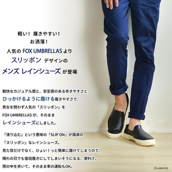 Fox umbrellas フォックスアンブレラ 日本製 スリッポン レインシューズ メンズ レインブーツ ラバーシューズ ラバースニーカー レディース 大きいサイズ 防水 雨靴 ブラック 黒 ネイビー ベージュ おしゃれ 大人 軽い 送料無料