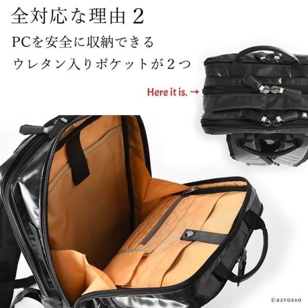 次に、2か所にPCを入れても安心なウレタンクッションがあり、大型の15インチや15.6インチにも対応しているのは嬉しいところ。