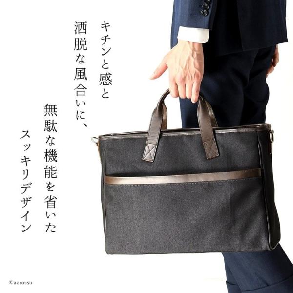 デニムの風合い生地でおしゃれなビジネスマンのためのショルダーバッグにもなる2wayメンズビジネストートご堪能ください。