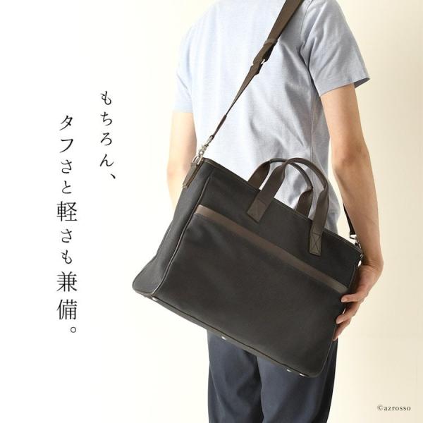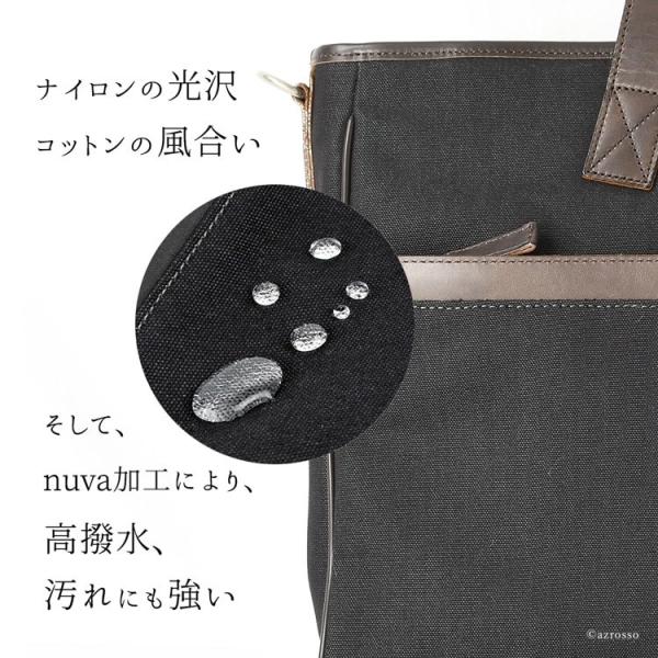 ナイロン特有の安っぽさを軽減、コットンで難しい撥水、防汚を実現した新時代の2wayビジネストートバッグ。