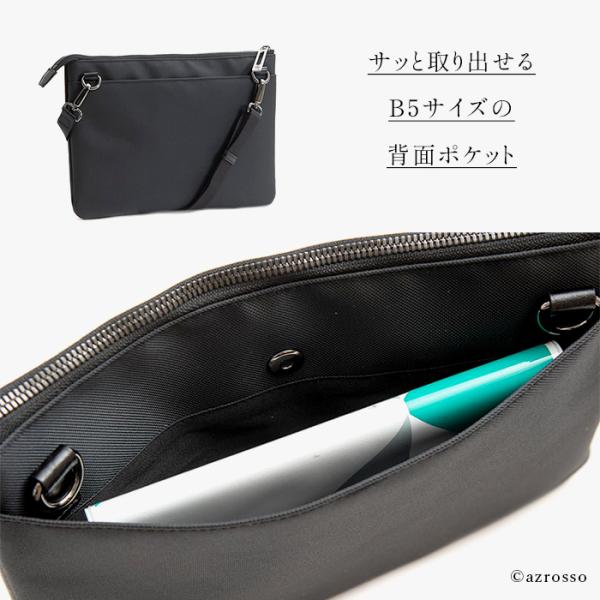 薄型で軽量、外側には大きめポケット、内側にはファスナーポケットもあり貴重品も安心。