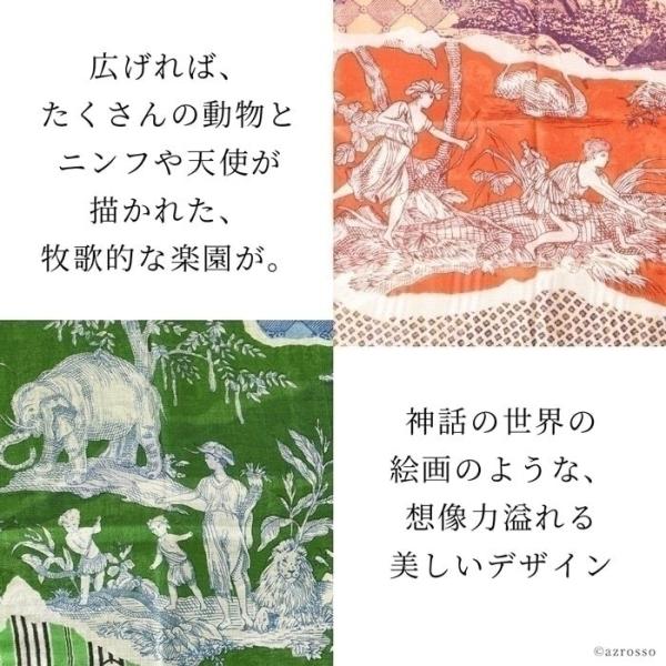 ストール メンズ 大判 薄手 ウール おしゃれ ギフト 男女兼用 ショール 動物 アニマル 花柄 ボタニカル 神話 モチーフ グリーン 緑 オレンジ 秋 冬 軽い 大人