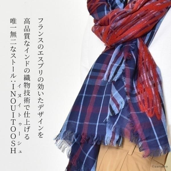 ストール 大判 薄手 防寒 メンズ おしゃれ 父 ギフト キツネ フランス ブランド 秋 冬 ウール 動物 モチーフ デザイン タータン チェック イヌイトゥーシュ