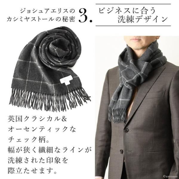 ジョシュアエリス マフラー グレー ブラック おしゃれ メンズ ギフト カシミヤ 100% 冬 ストール ウィンドウペン シンプル チェック イギリス ブランド