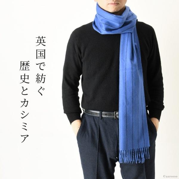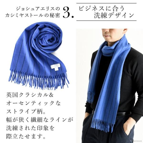 ジョシュアエリス マフラー メンズ おしゃれ ギフト 紺 青 ライトブルー シンプル ストライプ カシミヤ 100% 暖かい イギリス ブランド 誕生日 ギフト