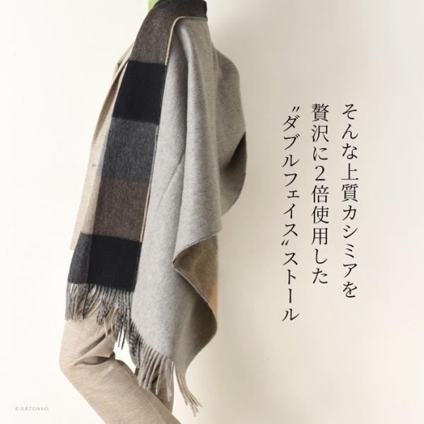 ダブルフェイス カシミアストール ブロックチェック 無地 大きめ