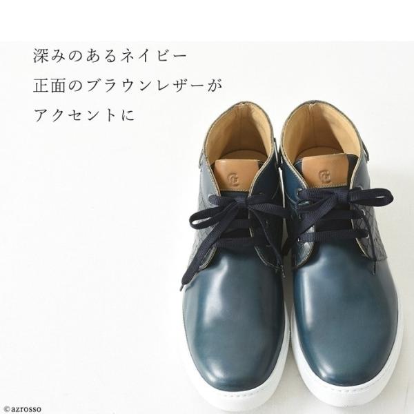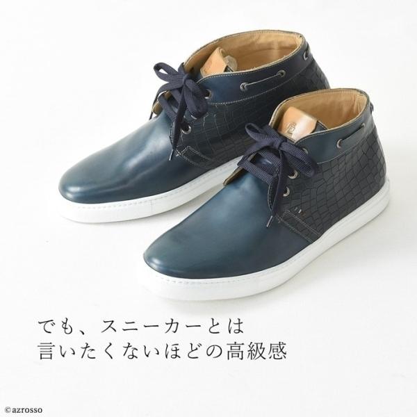 おしゃれ レザー スニーカー メンズ イタリア製 ブランド ハイカット 本革 ネイビー 大きいサイズ 41 42 26.5 27 27.5 20代 30代 40代 50代 メンズスニーカー