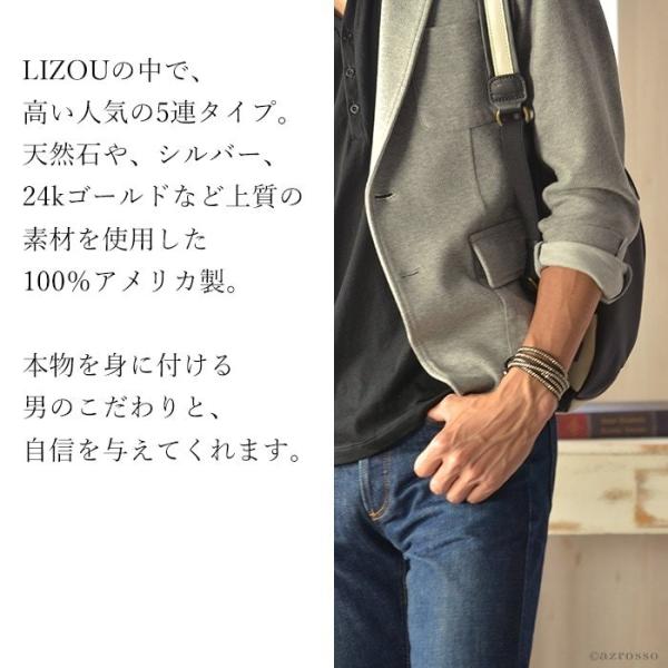 アメリカ製ブランド【LIZOU】リゾ 本革 ラップブレスレット【ブラック・ブラウン系】4連 5連 天然石・パワーストーン・ゴールドストーン・シルバーストーン レザーブレス ヒスイ メノウ クリスタル ブレスレット ラップブレス インポート メンズ