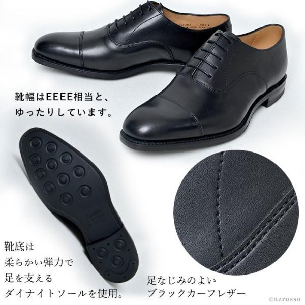 紳士靴の定番として冠婚葬祭にも使える基本の一足。30代,40代,50代,60代の大人なビジネスマンや20代男性の結婚式,新郎の高級革靴としても最適。高級本革カーフレザー、高品質のレザーのインソール。ソールはビジネスマンが履きやすいダイナイトソール(ラバーソール)で幅広(4E、EEEE)。伝統的なグットイヤーウェルト製法。ビジネス、出張、デート、スーツに合う大人な紳士靴として、レザーのコストパフォーマンスが高く、雰囲気は質実剛健とエレガンスの中間の万能なメンズ革靴の本革ストレートチップです。