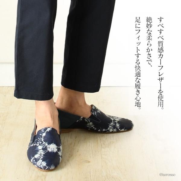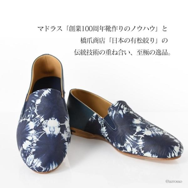 レザー スリッポン メンズ 定年 退職 おしゃれ 有松絞 マドラス 高級 ネイビー 抗菌 消臭