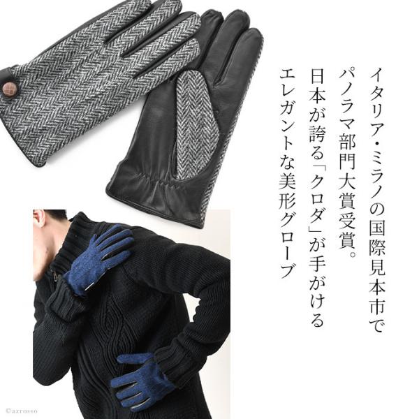 手袋 メンズ 誕生日 プレゼント 冬 ギフト スマホ 対応 ビジネス 日本製 ハリスツイード 本 革 グローブ スマホ 防寒 おしゃれ クロダ グレー ネイビー