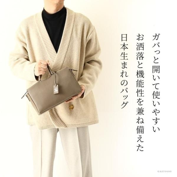 素材には、柔らかな質感が魅力の上質なイタリアンレザーを採用。滑らかな手触りと上品なツヤがあり、使うほどに深みを増す本革ならではの経年変化も楽しめます。軽量ながらしっかりとした厚みがあり、型崩れしにくいのも特徴。日常使いから旅行、出張まで、シーンを問わずスマートに持てます。