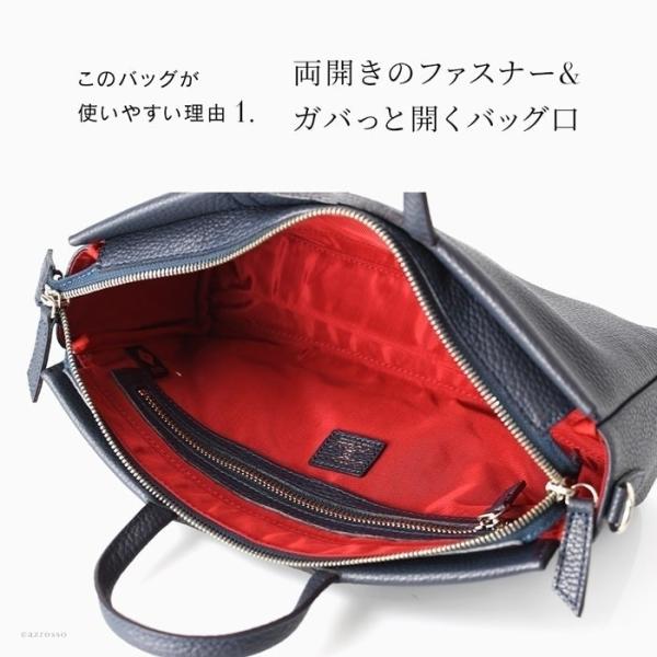 小さめながらも機能性は抜群。マチ広の横型デザインで、長財布やスマートフォン、キーケース、ポーチ、折りたたみ傘までしっかり収納。ファスナーは両開き仕様で、バッグ口が大きく開くため出し入れもスムーズです。内装にはバイカラーの裏地をあしらい。