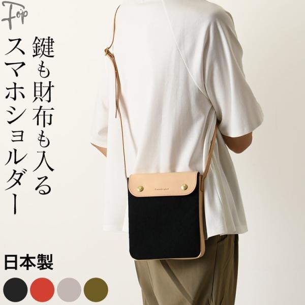 日本製 帆布 ミニ ショルダーバッグ 縦型 ヌメ革 レザー キャンバス スマホショルダー メンズ おしゃれ 軽量 黒 赤 ベージュ カーキ 30代 40代 50代