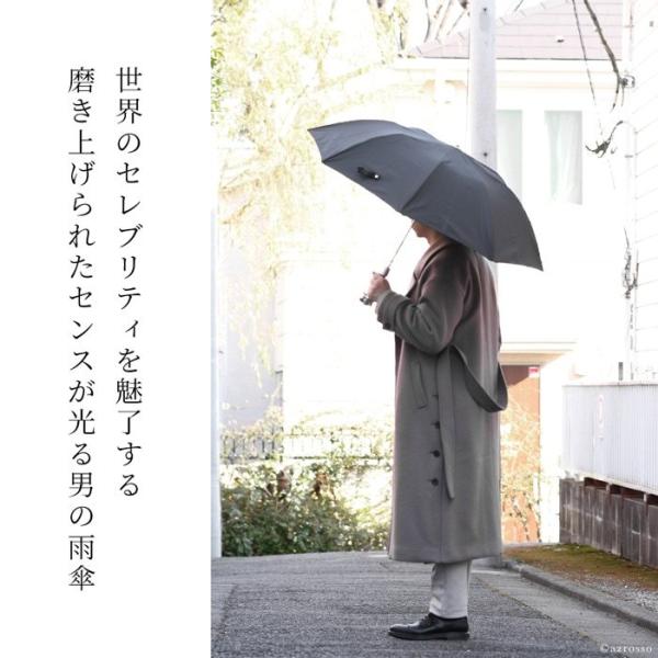 また、折りたたみ傘でありながら持ち手の存在感が際立ち、ビジネススーツにも私服にも上品にマッチします。