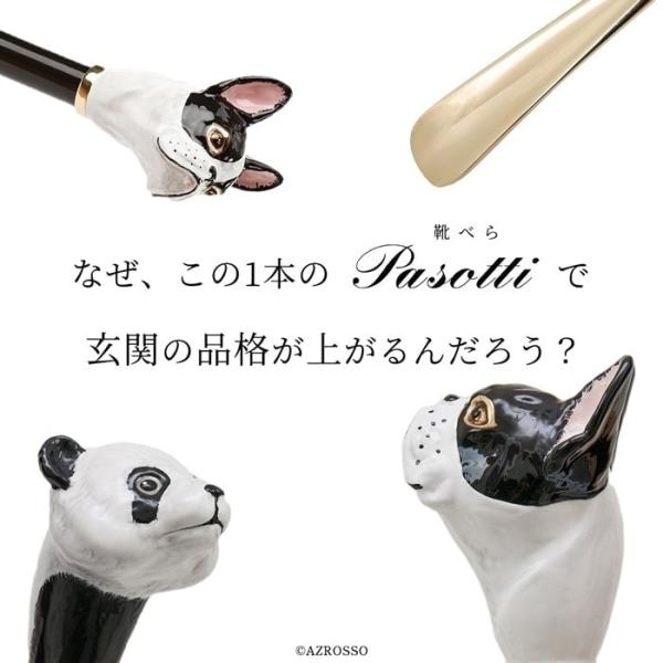 最高級の素材を使い、クールで愛らしい表情でゴージャスに仕上げた靴べら(シューホーン)は、イタリアのブランドPASOTTI(パソッティ)が生んだ逸品。上質なつくりと可愛さで欧米のセレブを始め、世界中の富裕層を虜にしています。 もしあなたの玄関に何かが足りない…と感じたら、パソッティのこの靴べらを一度玄関に置いてみてはいかがでしょうか。1本の靴べらが、玄関の品格をぐっと押し上げます。また、リアルに溢れたビジュアルで毎日の家の出入りのときに最高の癒しを与えてくれるに違い有りません。高級な素材とイタリアの職人技で仕上げる1本は使いやすさもファーストクラス。BOX入りで、プレゼントやギフトにもおすすめです。