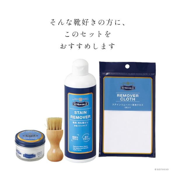 モウブレイ シュークリーム ジャー ステインリムーバー 大容量 ブラシ クロス 靴 皮革 艶出し クリーム 手入れセット レザー お手入れ M.モゥブレィ M.MOWBRAY