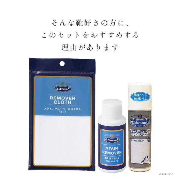 靴 皮革 汚れ落とし 革靴 クリーナー ケア 栄養補給 手入れセット モウブレイ ステインリムーバー 60ml クロス エクストラホワイト M.MOWBRAY M.モゥブレィ