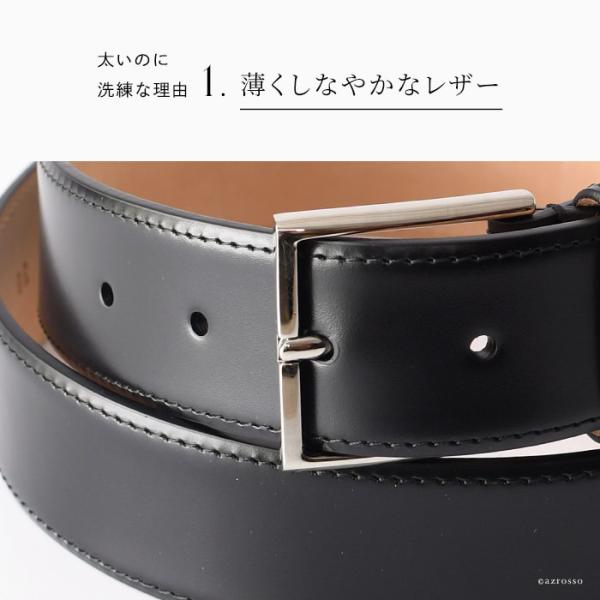 華奢なシルバーバックルが腰回りを引き締め、オフィス用ベルトとしてビジネス(仕事 通勤 会社)で活躍するのは勿論、パーティや結婚式などフォーマルスタイルでも重宝します。