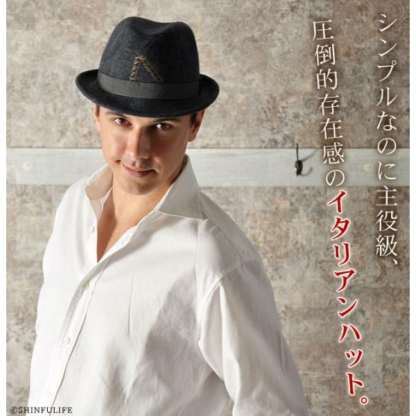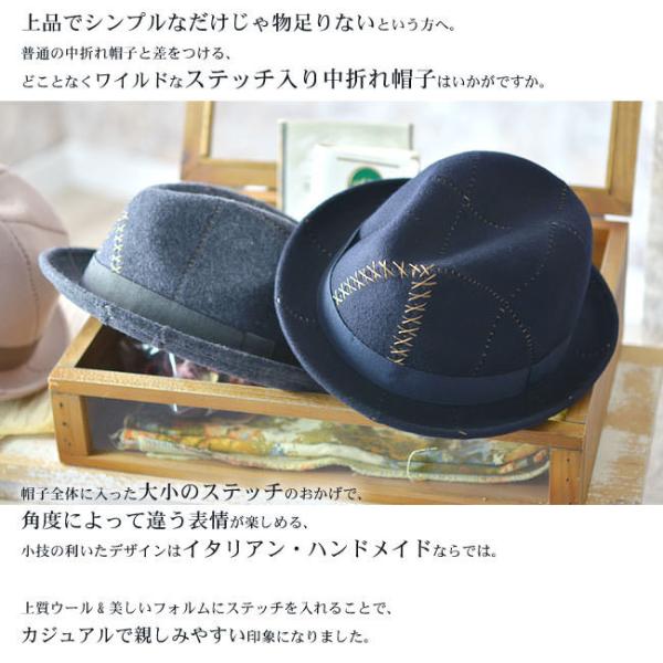 大胆なステッチが遊び心あるイタリア製中折れ帽子