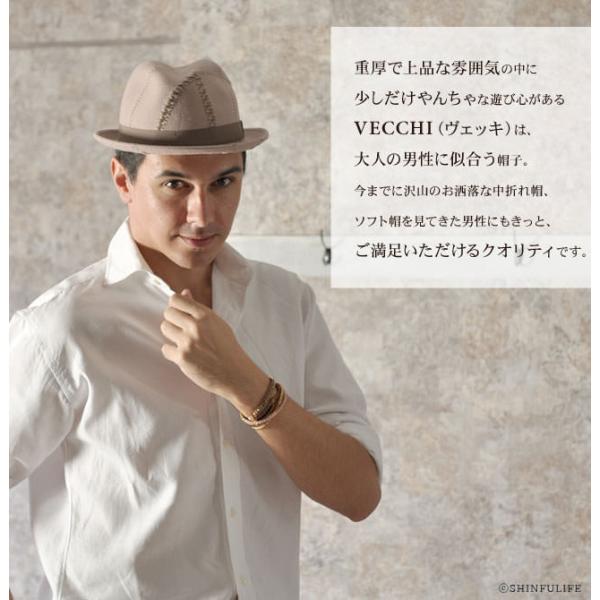 中折れ 帽子 メンズ 定年 退職 ウール イタリア 製 おしゃれ ブランド ダブル ステッチ ベージュ グレー 紺 ソフト フェルト 父 誕生日 ギフト ヴェッキ