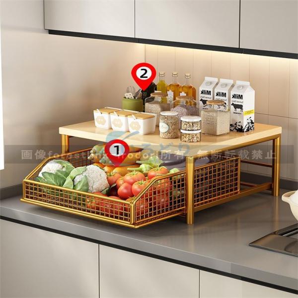 引き出し式デスクトップ キッチン 収納ラック 野菜かご キッチンカウンター 果物電子レンジ 鍋・食器 電子レンジ 調味料 キッチンツール コーヒーメーカー置き台