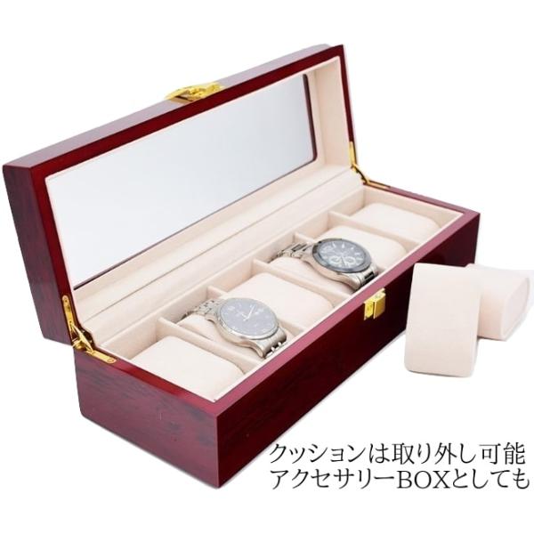 ・腕時計は最大6本まで収納可能なため、コレクションが多い方や1本、2本、3本とこれから時計が増える方にも安心です。中のクッションは取り外しが可能で、クッションを取り除けば 指輪 イヤリング ネックレス ブレスレット ピアス 等のジュエリーの アクセサリー用小物入れ としても便利に活用できます。