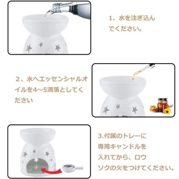 ・ティーライトスプーンが付属しているため、出し入れが簡単で、キャンドルの火で火傷する心配がありません。オイルを垂らす上部は大きく広いデザインになっており、エッセンシャルオイルの燃焼時間を効果的に延長し、香りがゆっくりと広がります。